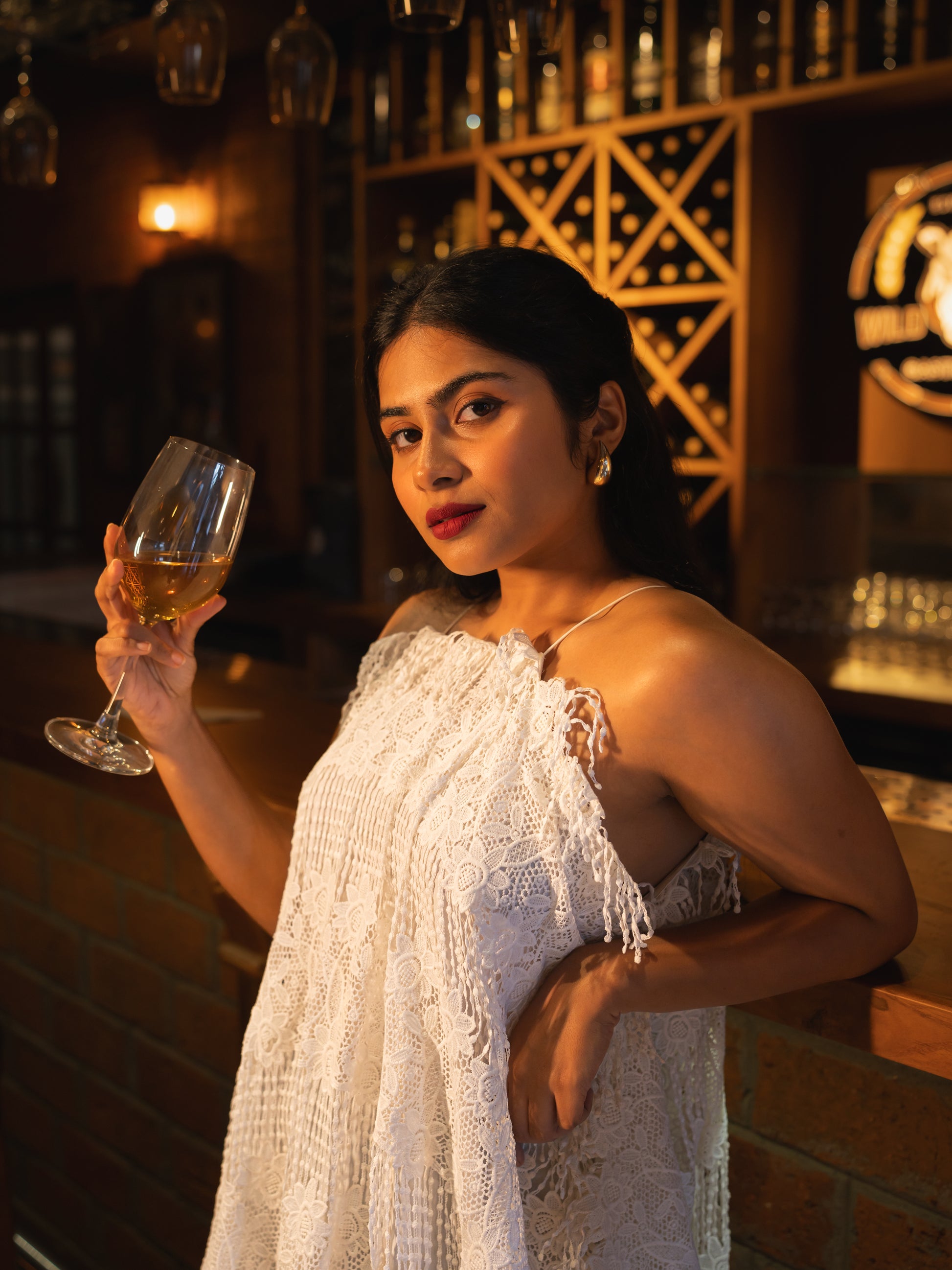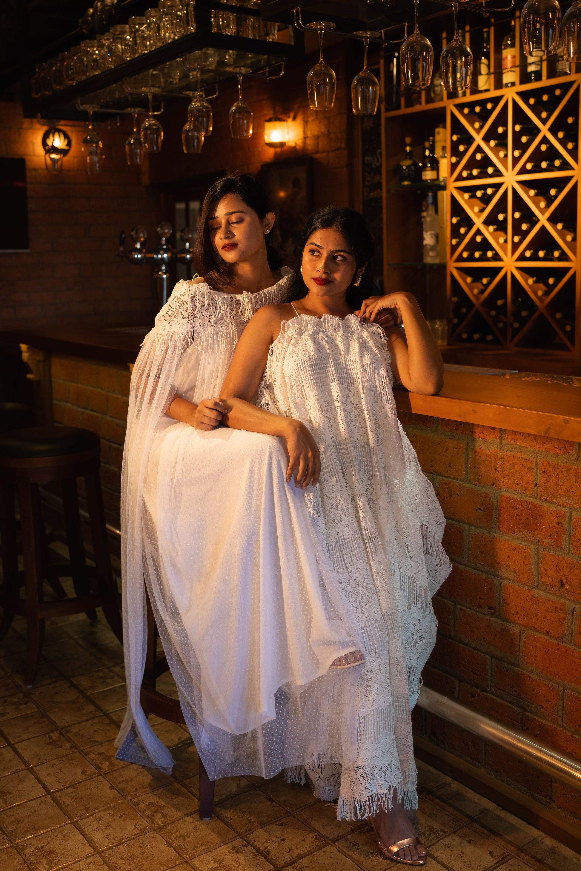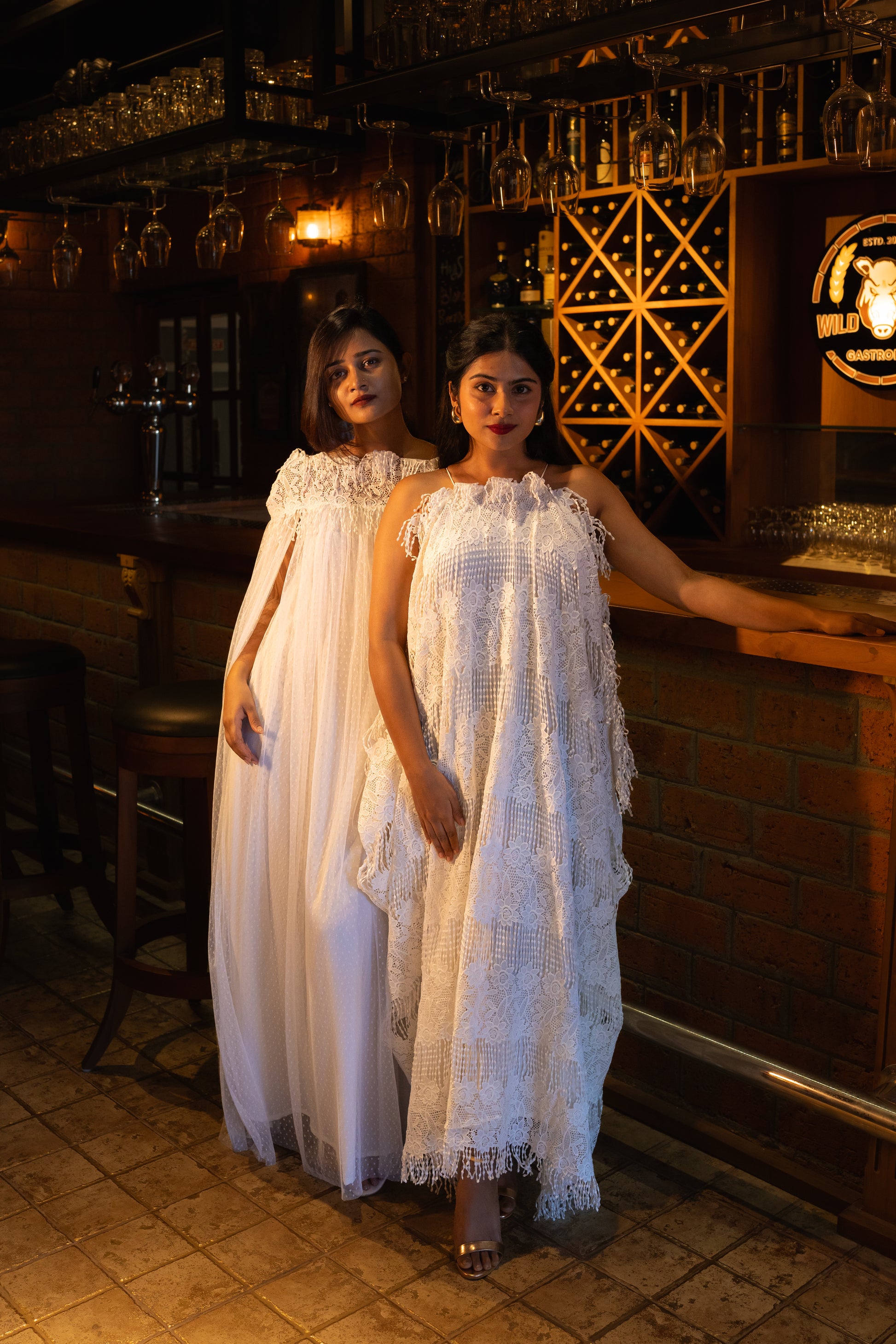 A stylish halter neck dress with fringe lace detailing, offering a playful and sophisticated touch. Its relaxed kaftan fit ensures comfort while exuding effortless charm for any occasion.