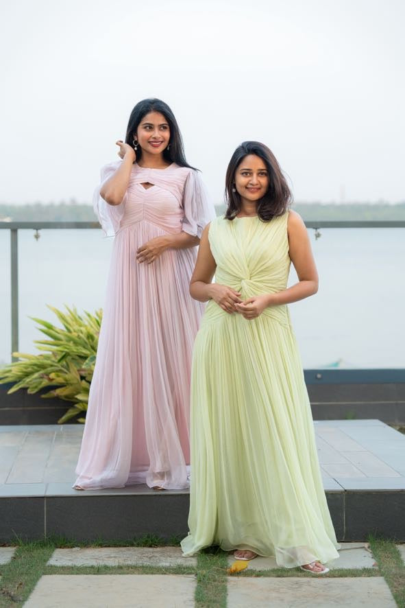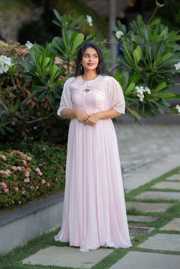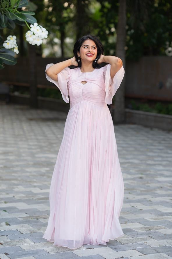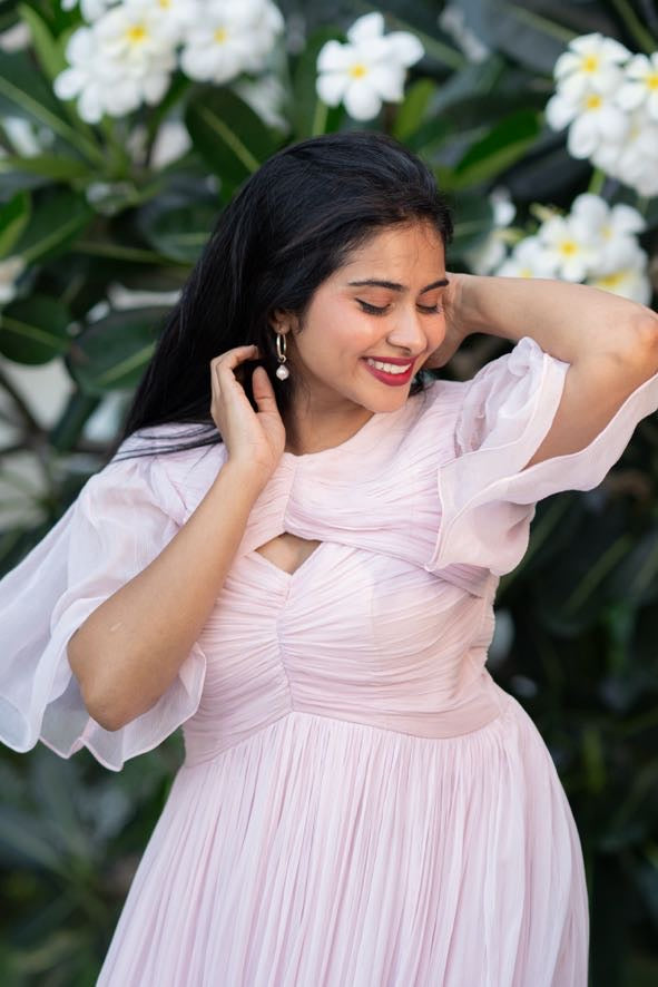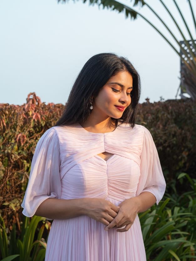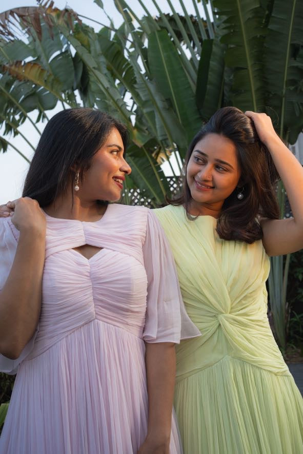 Kai dress is curated in soft chiffon fabric with a single cut-out in the front, revealing just the right amount of skin. The artful ruched detailing cinches at the waist, creating a flattering silhouette that flows gracefully into an A-line skirt, ensuring both comfort and style. Personalize the dress with your favourite colour.